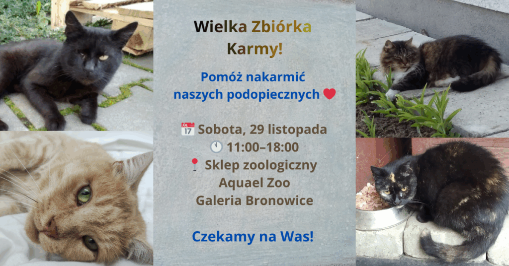 Pomóż nakarmić naszych podopiecznych Kiedy? Sobota, 13 grudnia, od 11:00 do 18:00 Gdzie? Sklep zoologiczny Aquael Zoo, Galeria Bronowice Przyjdź, dorzuć garść dobra i poznaj bajkowego, różowego kota! Czekają też